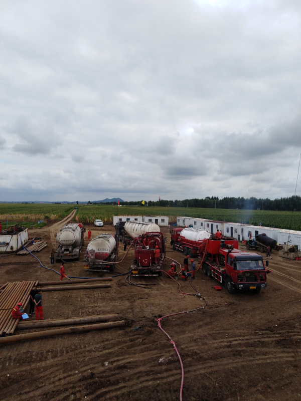 大慶東油鉆采有限公司固井隊于2018年8月5日進行固井施工。注灰,低密度60方,原漿18方。替泥漿34.2方,水泥漿返出地面,施工**順利,一切正常。